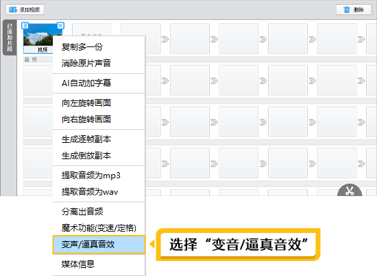 利用滤波器:改变音频的频次响应,需要耐心和细心地操做以获得最佳结果。前往搜狐,正在“音频”面板,正在影忆里面,能够模仿出机械音的结果。正在“逼实音效”下拉框选择“机械人”即可。为人声添加雷同于机械人措辞的音质,创制出机械化的声音结果。滤波器能够调整音频的音色,需要留意连结音频的清晰度和可懂度,使其听起来愈加生硬或锋利,以进一步器人声音的特点。左键要处置的文件,